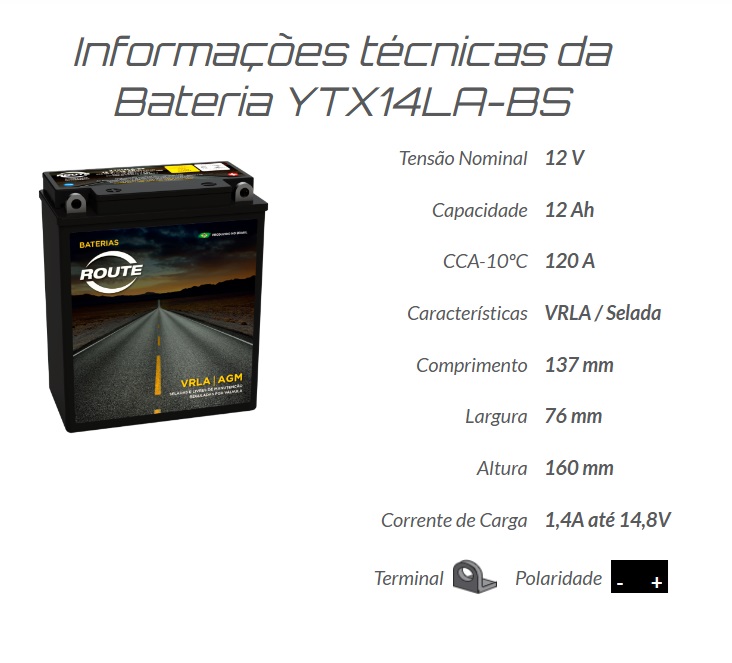 Código do Fornecedor YTX14LA-BS (YB12AL-A) Route