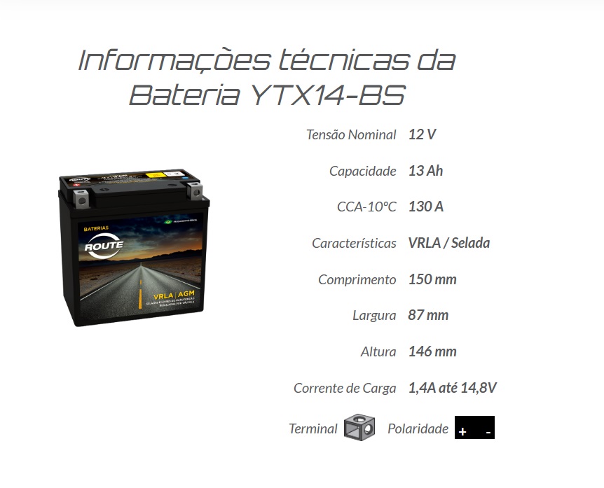 "Informações técnicas da Bateria YTX14-BS"