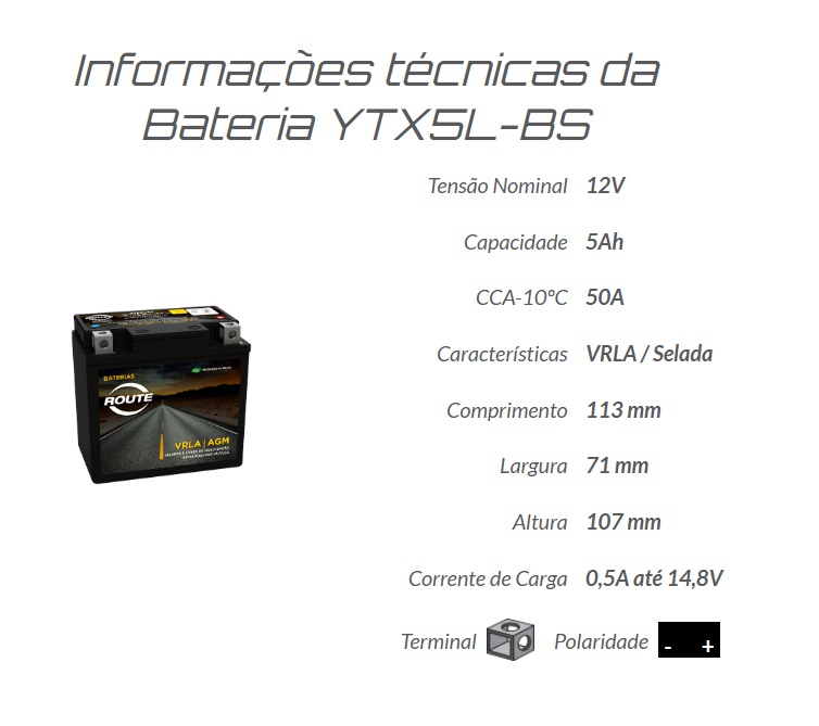 Produto BATERIA ROUTE SELADA YTX5LBS