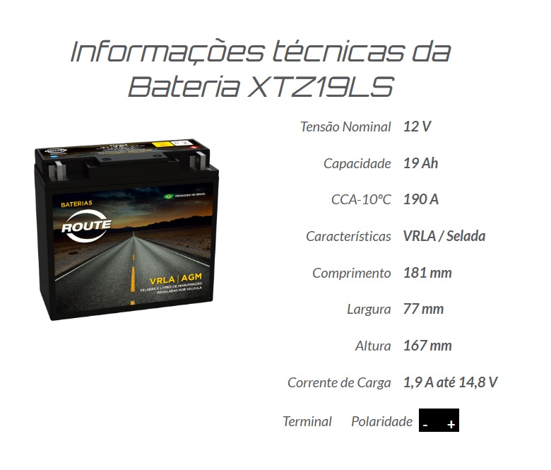BATERIA ROUTE SELADA XTZ19LS (YT19BL-BS)